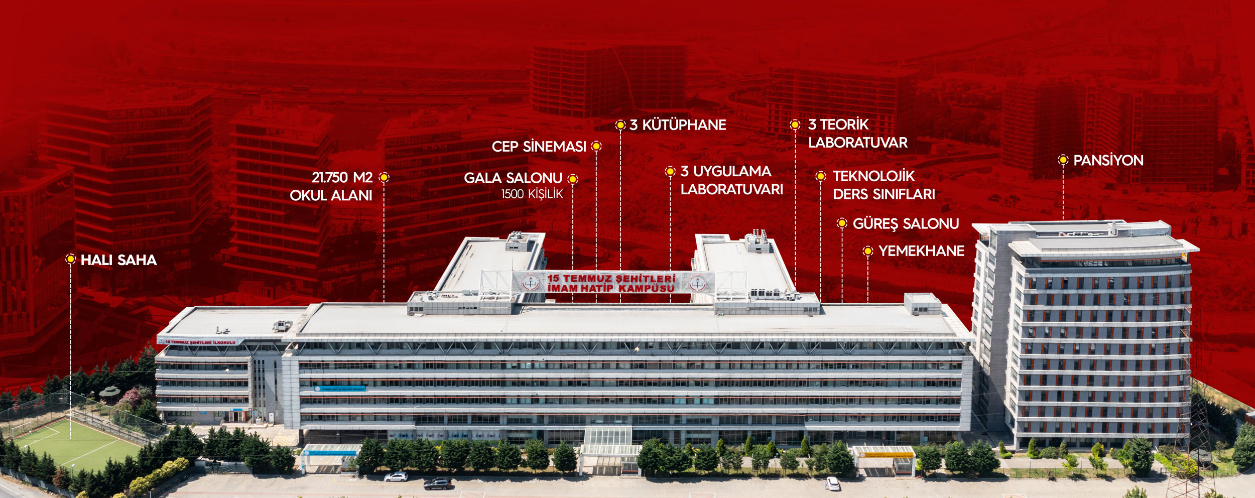 34.000 m² alan üzerinde kurulu, 80.000 m² kapalı alana sahip akıllı kampüsüyle dikkat çeken okulumuz, eğitim binası standartlarının çok üzerinde bir yapıya sahiptir. Toplum 5.0 perspektifi ile robotikten yazılıma, AR-GE birimlerinden yapay zeka projelerine kaynaklık eden modern teknoloji atölyelerinde teknolojiyi sadece kullanmayı değil, üretmeyi hedefliyoruz.