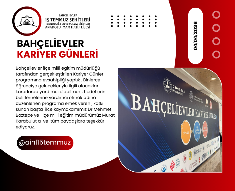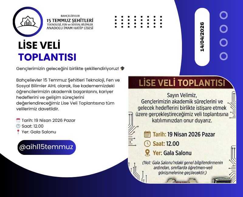 15 Temmuz Şehitleri Anadolu İmam Hatip Lisesiyle geleceğe adım at.