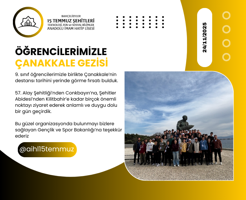 9. sınıf öğrencilerimizle birlikte Çanakkale’nin destansı tarihini yerinde görme fırsatı bulduk.