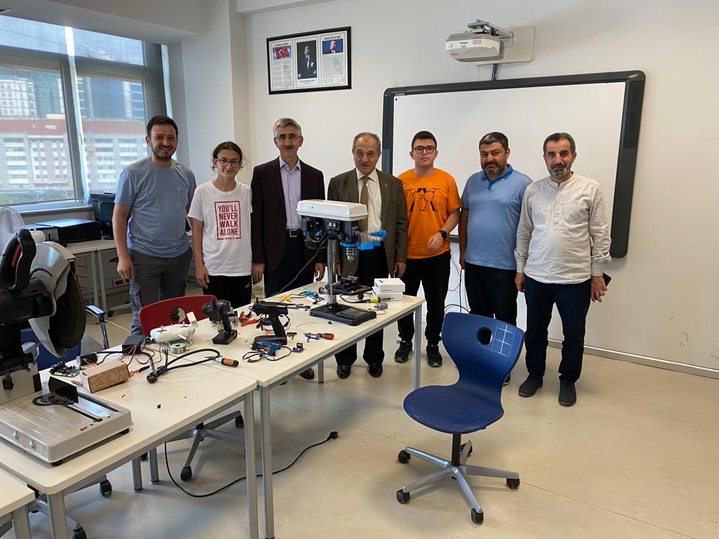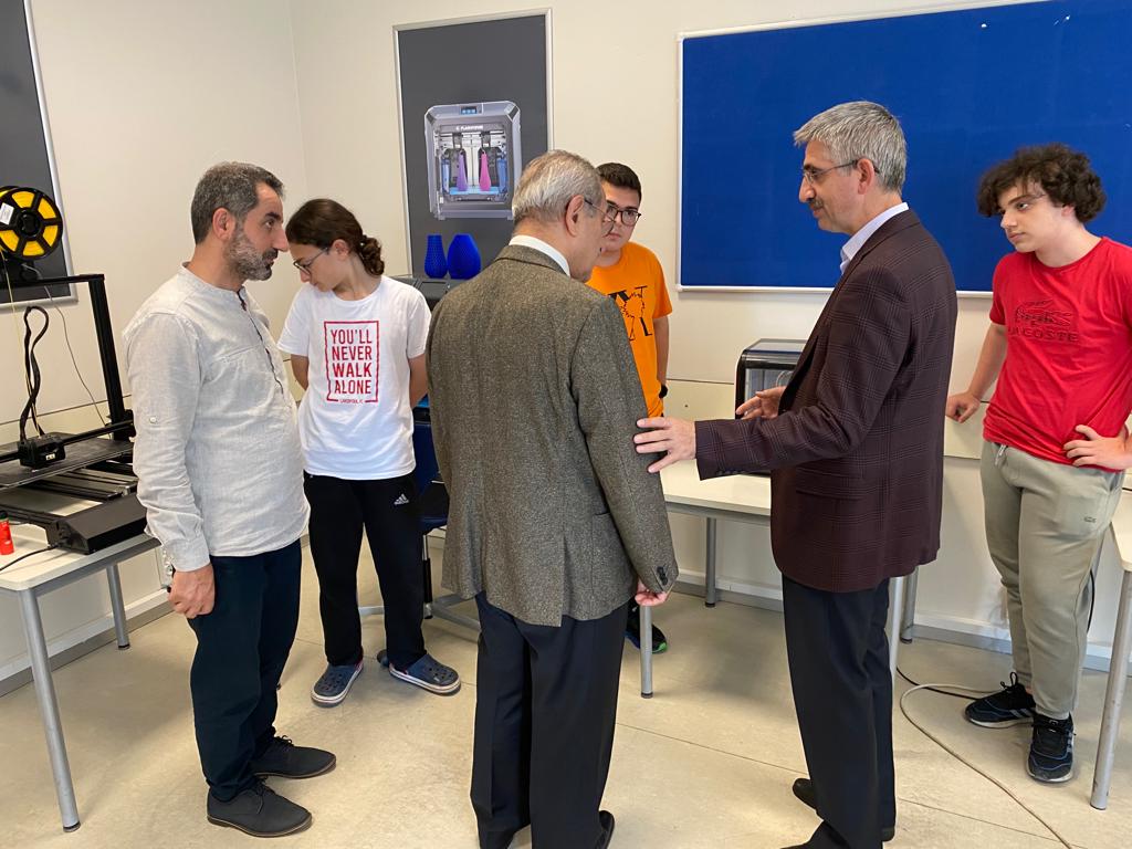 Yeni yapılan teknoloji atölyelerimizi gezen Nazif YILMAZ teknoloji bölümü öğrencilerimizin çalışmalarını inceledi, kendilerinden çalışmaları hakkında bilgi aldı.